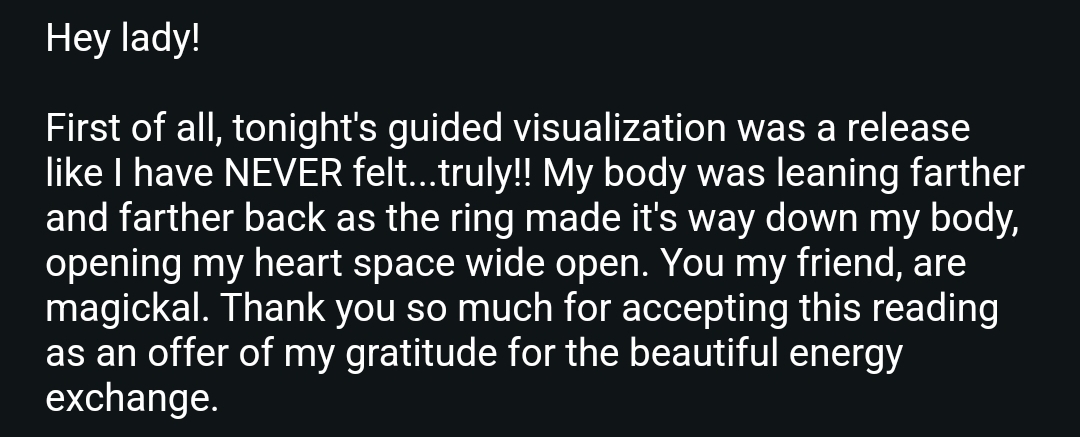 Working with Heather has been an absolute dream. Not only did I reach my goals but I also unlocked so much more. She helped me remember my gifts, she helped me connect with my womb and my ancestors. HOLY MANIFESTING POWERS. Our sessions were pure magic , every single time. Heather didn't just get to know me, Heather got to know my soul. That alone is the most beautiful thing anyone can do.